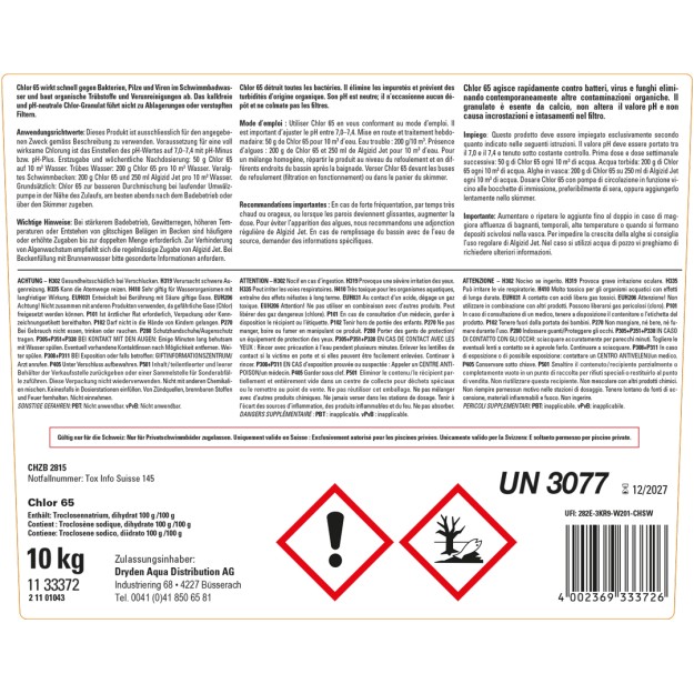 Chlor 50 wirkt schnell gegen Bakterien, Pilze und Viren. Kalkfrei und pH-neutral. Verhütet den vorzeitigen Chlorabbau durch Sonnenlicht, Gebinde: 5 Kg