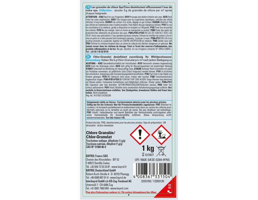 Schnell lösliches Chlorgranulat zur Stossbehandlung bei Wasserproblemen in kleinen Pools und Whirlpools. Sofortige Wirkung gegen Algen, trübes oder milchiges Wasser. Das Granulat wird direkt ins Wasser dosiert. Durch die spezielle Granulat- Form entsteht bei der Dosierung weniger Staub.